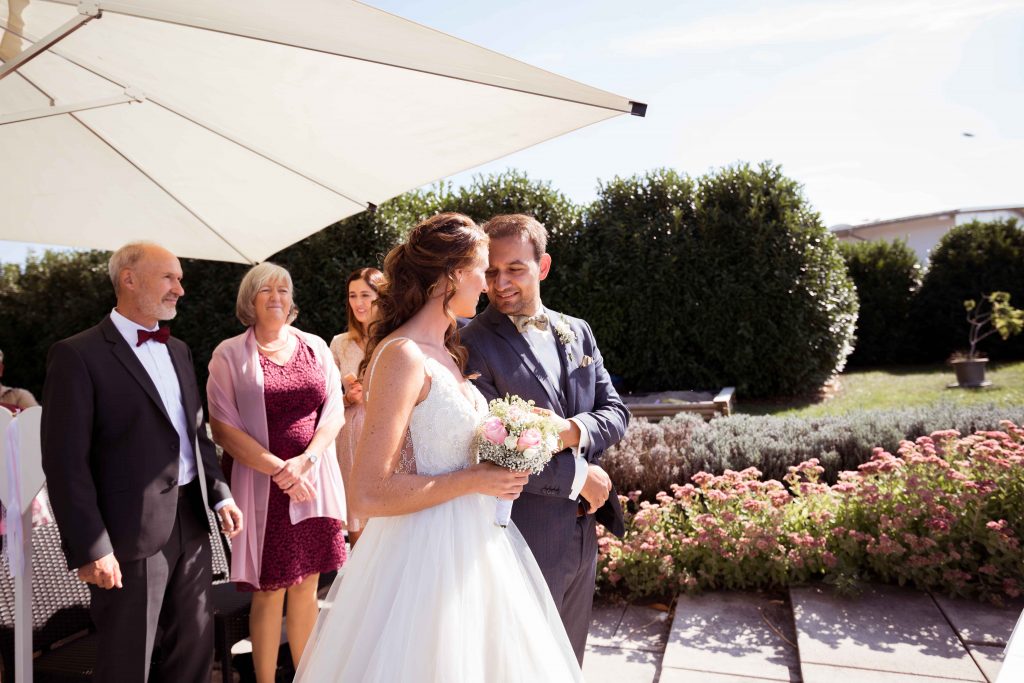 Blicke zwischen Eltern und Brautpaar.